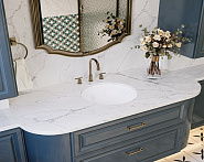 Они передают естественность и избавляют от излишнего блеска. Кварцевый агломерат с матовой отделкой подчеркнет спокойствие и натуральность пространства.